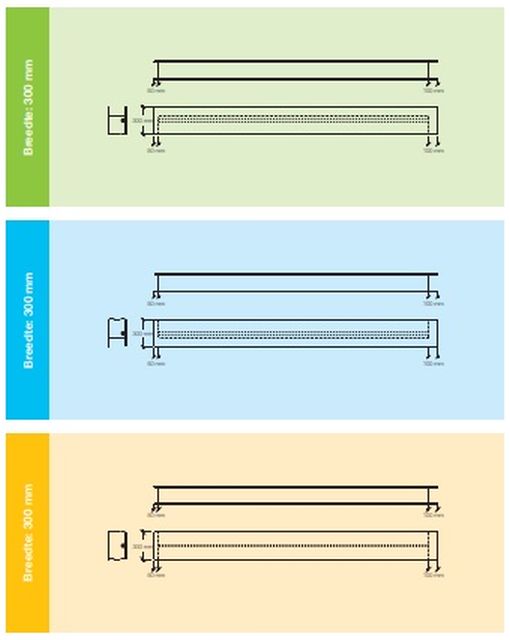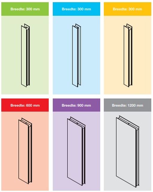 – 4 breedtes (300, 600, 900 en 1200 mm)